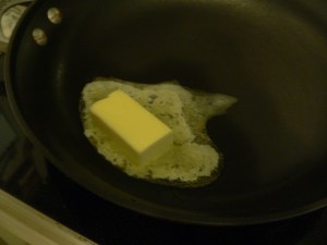 Melt about a half stick of real butter on medium high heat…you are going to want your skillet nice and hot!
