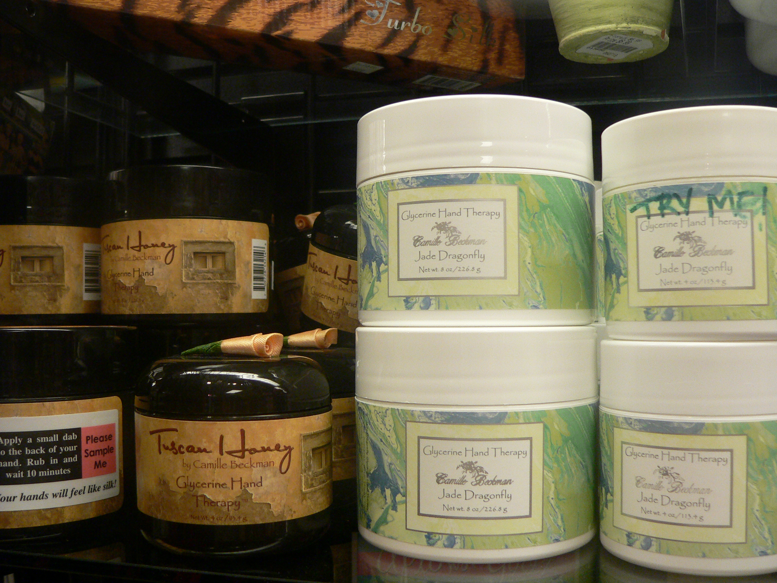 Glycerine Hand Therapy. This unique restorative Cream moisturizes and nourishes through the careful blending of Glycerine, Vitamin E, Aloe Vera, Wheat Protein, Almond Oil, and Botanical Extracts. We have offered this line for YEARS because it is such high quality and our ladies just love it! We will continue to offer Camille Beckman for our clients!