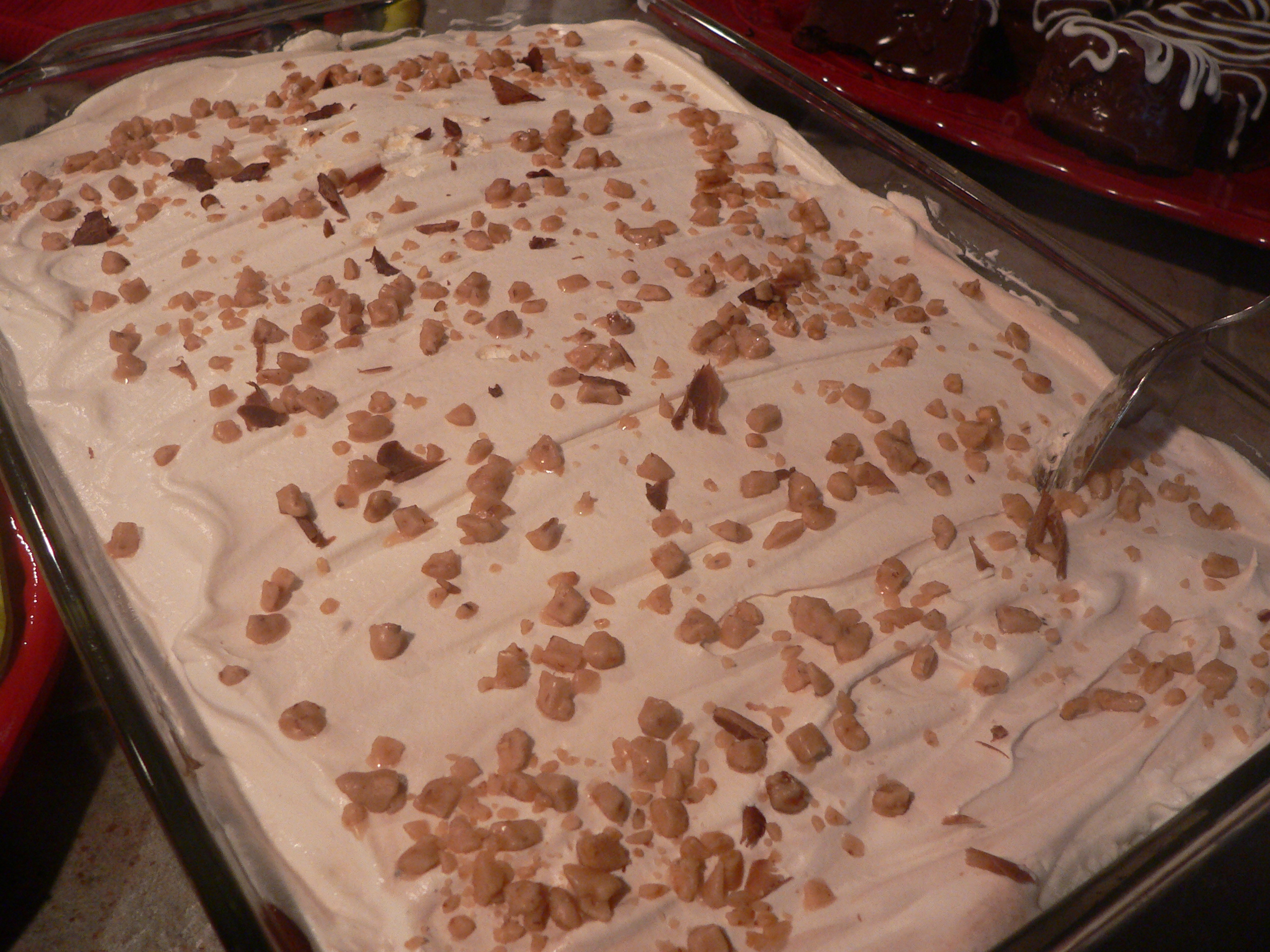 Prepare the first chocolate pudding mix according to package directions; Pour into bottom of a 9 x 13 glass serving dish. Top with 1 container Cool Whip. Add the cake slices, or cupcake tops on top of the cool whip. Prepare second package of chocolate pudding. Pour over cupcake tops. Top with another Cool Whip layer. Garnish with shaved chocolate, toffee bits, mini chocolate chips or whatever you have available! No complaints! What’s not to love? Chocolate, Cool Whip, Pudding!